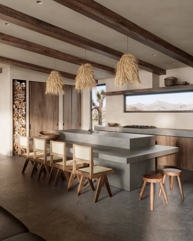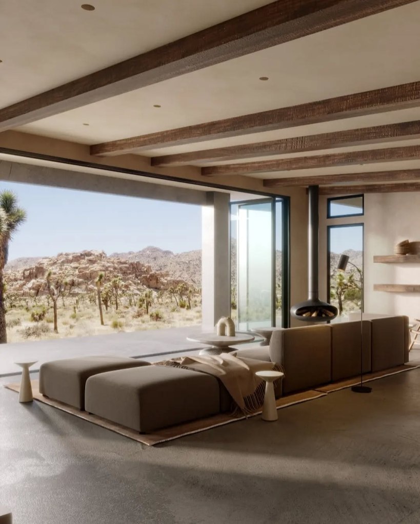 The Hamptons Desert Retreat, doğal dokuların, ham malzemelerin ve modern çizgilerin bir araya geldiği sıcak ve dengeleyici bir iç mekân projesidir. Doğa manzaralarının dinginliğinden ilham alan bu tasarım; açıklık, doğal ışık ve çevresel duyumsamaya dayalı dokunsal bir bağlantı vurgular.